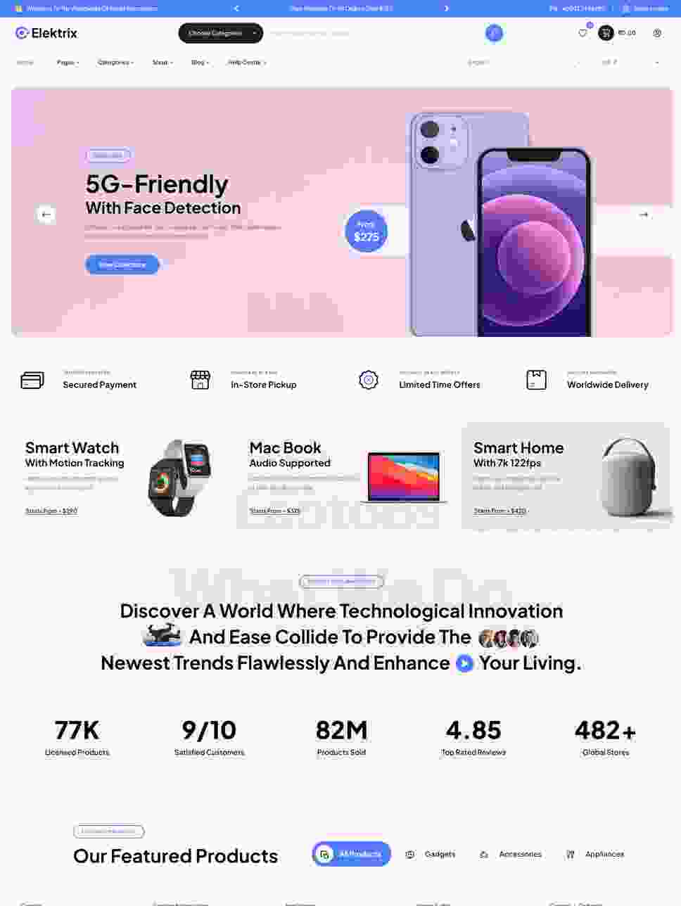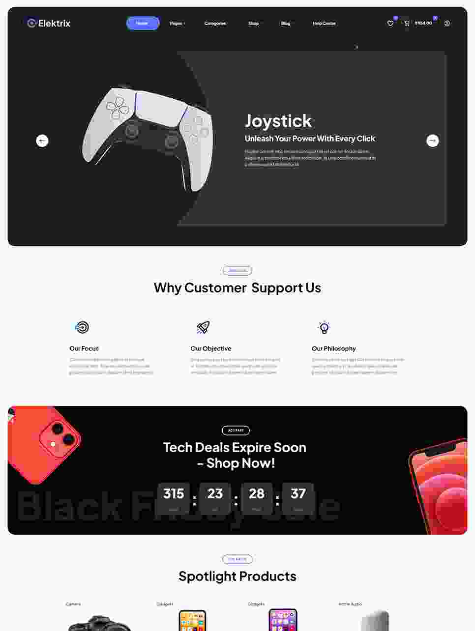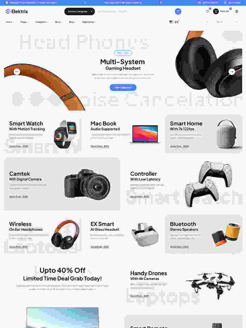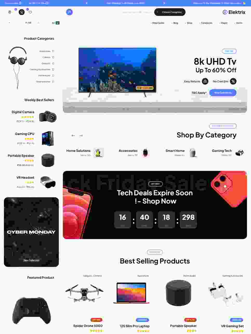 Elektrix is a complete solution for online stores, which supports all kinds of plugins required for selling products online. Check out its most advanced features, including built-in header & footer, mega menu, single pages, and much more.